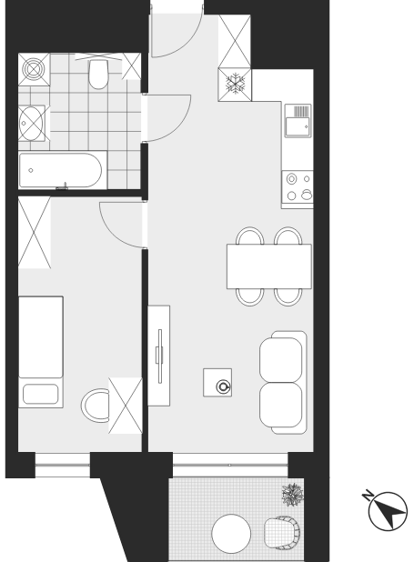 - Charakterystyka mieszkania: 37,88 m², 2 pokoje, 1 łazienka; stan: deweloperski