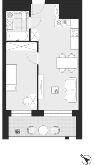 - Charakterystyka mieszkania: 38,28 m², 2 pokoje, 1 łazienka; stan: deweloperski