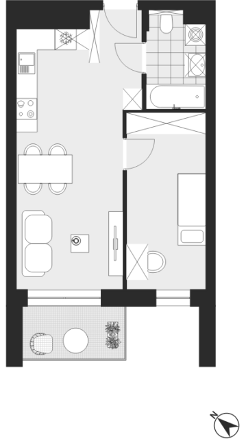 - Charakterystyka mieszkania: 39,16 m², 2 pokoje, 1 łazienka; stan: deweloperski