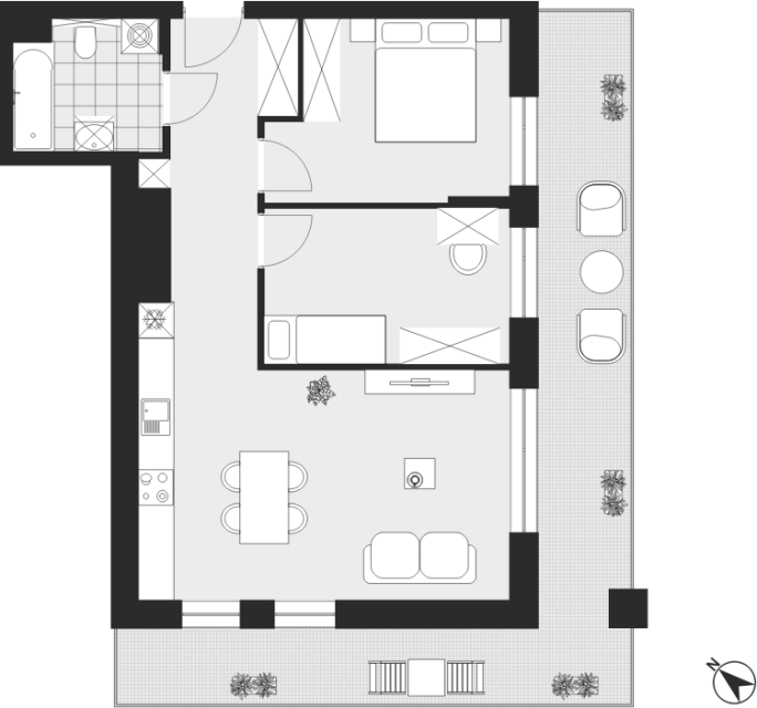 - Charakterystyka mieszkania: 59,23 m², 3 pokoje, 1 łazienka; stan: deweloperski