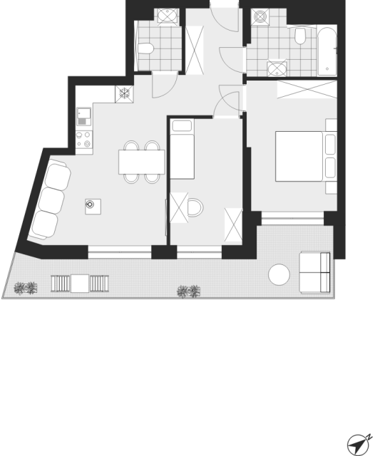 - Charakterystyka mieszkania: 57,96 m², 3 pokoje, 1 łazienka; stan: deweloperski