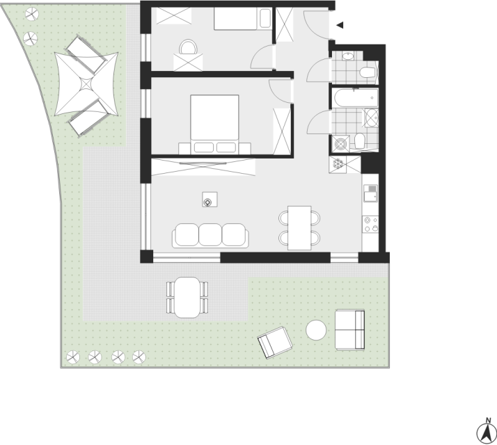 - Powierzchnia dodatkowa: taras (19,4 m²), ogródek (47,8 m²)