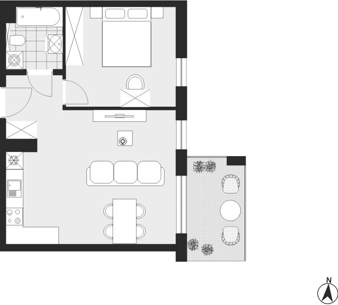 - Charakterystyka mieszkania: 44,51 m², 2 pokoje, 1 łazienka; stan: deweloperski