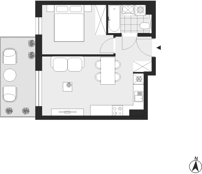 - Charakterystyka mieszkania: 34,76 m², 2 pokoje, 1 łazienka; stan: deweloperski