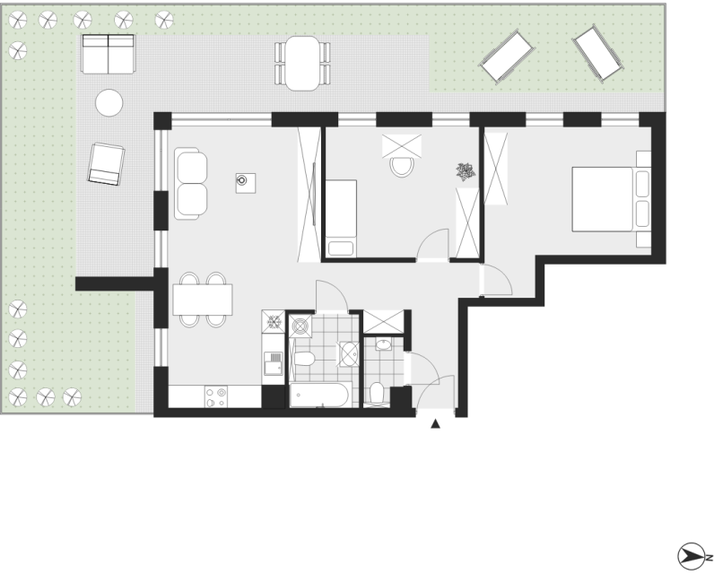 - Powierzchnia dodatkowa: taras (25 m²), komórka lokatorska (1,4 m²), ogródek (49 m²)